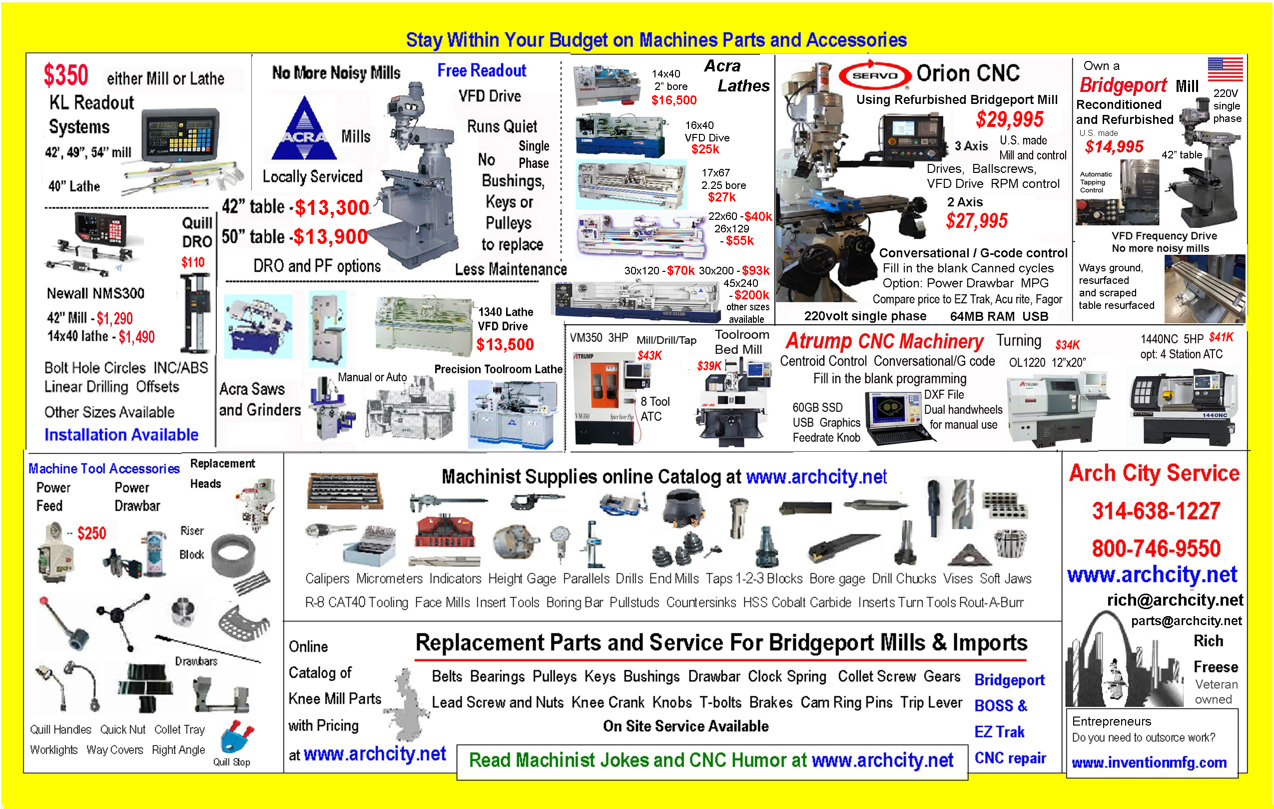 Commitment encompasses everything, from sales and support to personal service and training. Some Machine Tool Distributors select lines to sell because they have a famous name or have sold thousands of machines. I selected these lines from a servicemans viewpoint. *Atrump and Fryer CNC for their reliability, and serviceability, Box Ways for accuracy, Guideways for Speed Large memories for storing long programs *Acra Machinery - mills and lathes for their quality and use of Spindle Inverter Drives for less maintenance Giving you the best value for your dollar